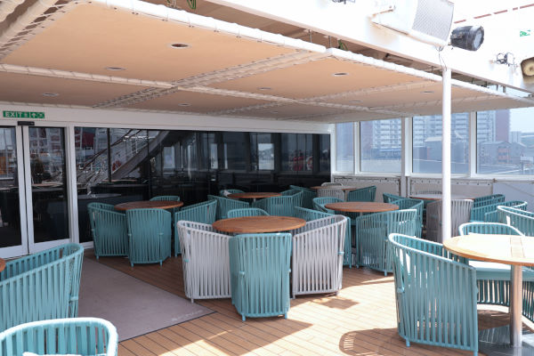 プールの上の階にはオープンエアバーがあり航跡を眺めながら飲めます。