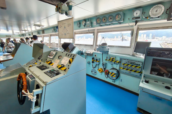 「立ち止まらないでください」と何度も言われましたが、艦橋(操舵室)見学は貴重な機会なので見学者が停滞していました。
