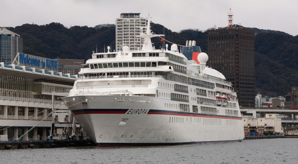 ドイツの高級船EUROPAが3/5神戸港に入港しました。3/6には中突堤にアルタニアが入港し神戸港にはドイツの船会社が運航するクルーズ船2隻が着岸していました。