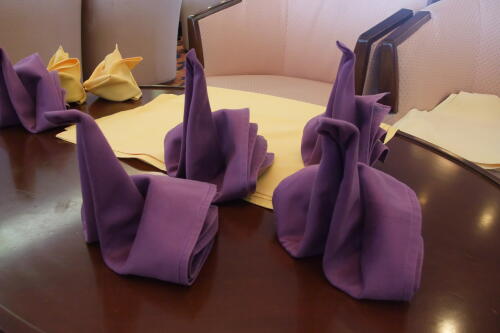 | レストランのウェイトレスが講師のテーブルナプキンの折り方教室 | |