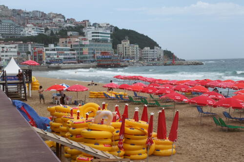 | 海雲台ビーチ。風が強く、波が荒かった | |