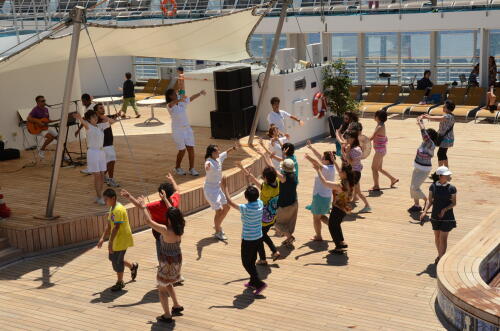 終日航海日にはデッキでは、ダンスやゲームを中心に多数のイベントが開催されます。