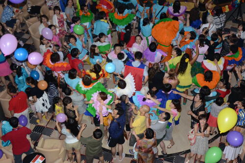 この夜のシアターでのイベントはビデオ上映なのでパス。 デッキでは遅くまでゲームやダンスパーティが開かれました。 船内のイベントは「アニメーションチーム」が司会、進行を行います。 説明は、英語、中国語、日本語、韓国語で行われます。