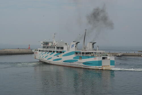 フラワーラインは入出港時に船首の細い煙突から煙が上がります。 フラワーラインのバウスラスターはエンジン駆動でしょうか?