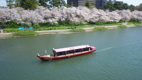 岡崎城を中心とした岡崎公園と伊賀川堤に1,000本のソメイヨシノが咲き誇る「岡崎の桜まつり」の関連イベントとして実施される、「岡崎城下 舟遊び」の観光船に乗船してきました。