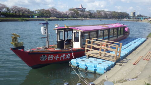 乙川観光船「竹千代丸」は2014年3月28(金)から4月7日(月)まで運航され、朝10:00から平日は14便、土日は16便運航されます。 岡崎ニューグランドホテル前の河川敷から出航し20分の航海時間です。 料金は1,000円です。