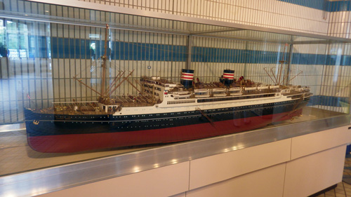名古屋海洋博物館には幾つかの客船の模型が展示されていますが、浅間丸の模型は日本郵船の所有で長期借用しているとのこと。