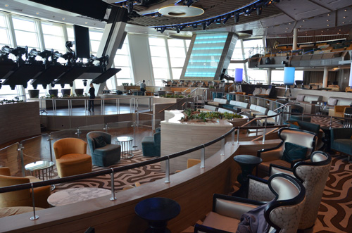 船尾のTWO70°は、昼間は270°のパノラマビューが広がる明るいラウンジ。 夜は巨大なスクリーンや様々な設備を駆使したエンターテイメントが上演されます。