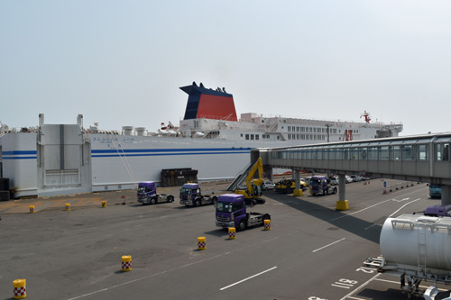 苫小牧西港入港。 隣の岸壁には「きたかみ」が停泊していました。太平洋フェリーが新造船を発注したとの報があったので、「きたかみ」は2年後にはリプレースされる見込みです。