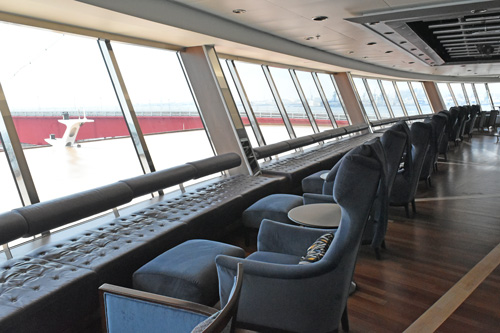 見学は、船首ブリッジ上の展望ラウンジから始まりました。見晴らしの良いラウンジです。ホランドアメリカの船は、船首に展望ラウンジがあるのが特長の一つです。Crow's
