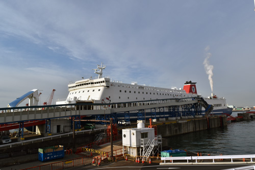 | 徒歩客からやや遅れてトラックも下船開始 | 大阪南港のフェリーきたきゅうしゅうⅡ |