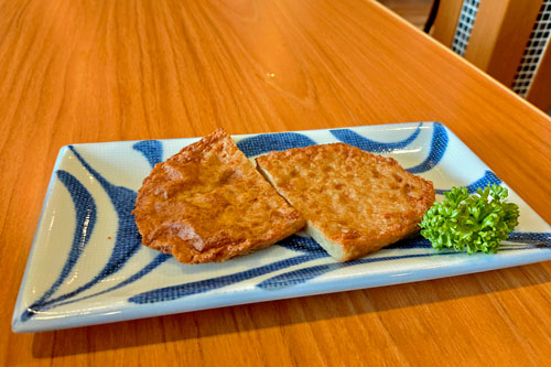 昼食のメニューは、オレンジフェリーの中でも人気が高い「宇和島鯛めし」と愛媛特産の「じゃこ天」です。「宇和島鯛めし」はオレンジフェリー瀬野副社長の食べ方解説付きで頂きました。