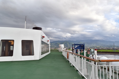 大阪湾内は強風が吹いていましたが、明石海峡を越えた辺りから風が弱まり、雨も降りやんで、オープンデッキに出られるようになりました。