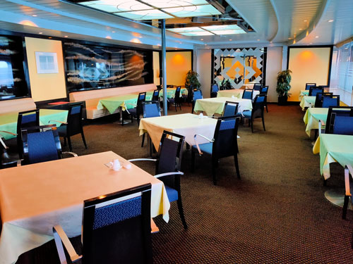 レストランは左舷船尾にあります。レストラン内の壁際にはタオルが敷き詰められている場所がありました。配管のトラブルがあったのかもしれません。