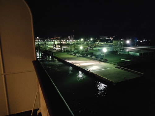 舞鶴入港は予定時刻21:15に対して20分早着でした。