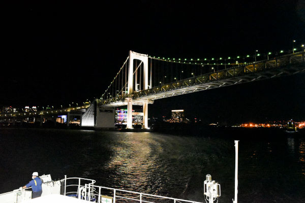 横浜ベイブリッジを通過する際には、写真を撮ろうとするお客さんで舷側は混雑していました。