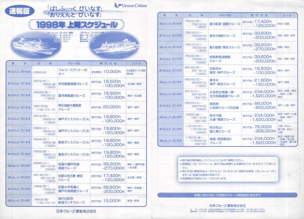 「ぱしふぃっくびいなす」が就航した1998年当時は、「飛鳥」や「にっぽん丸」と比べると安価な料金設定でした。