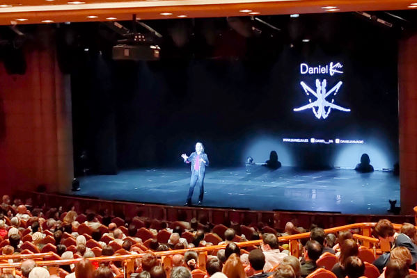この夜のメインショーはダニエル・カーのマジックショーでした。大掛かりなマジックではないので前方の席がお勧めです。