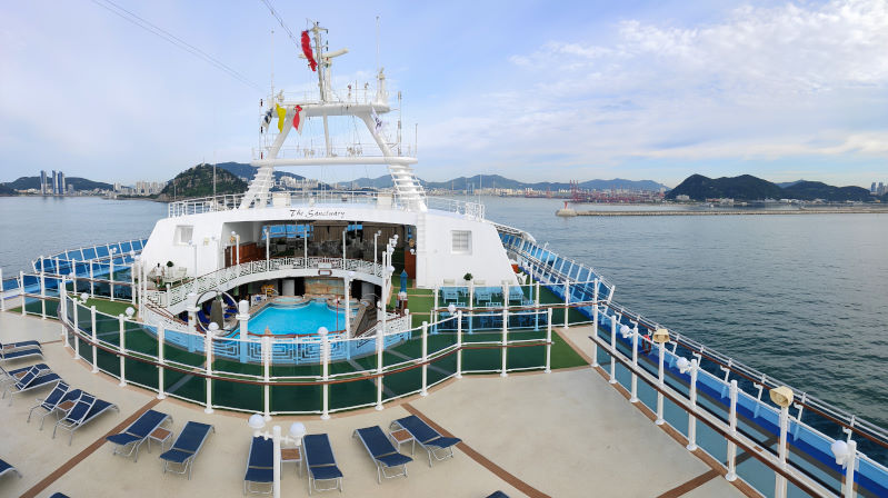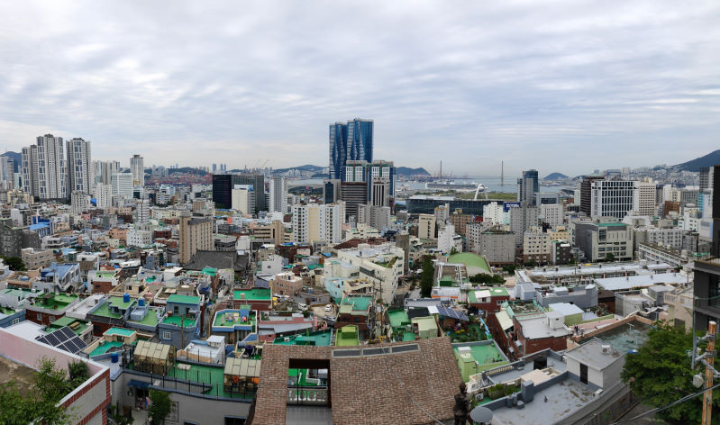 朝、目覚めてデッキに出ると、既に釜山の街並みが間近に見えていました。