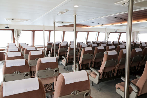 船名は海の「SEA」にスペイン語で散歩道を表す「PASEO」を組み合わせています。シーパセオ2の旅客定員は300名ですが、翔洋丸と同様に440名の臨時定員があります。