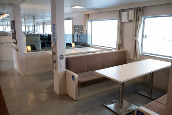 先代の翔洋丸を踏襲するような、近距離航路のフェリーとしてオーソドックスな客室です。