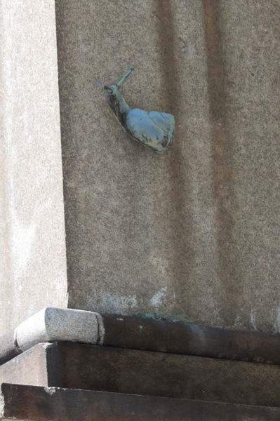 大輪田橋の親柱にはたくさんのカタツムリが這っています。このカタツムリは環境造形Qの小林陸一郎氏の作で、環境造形Qはポートアイランドの「かたつむりの広場」を制作しています。