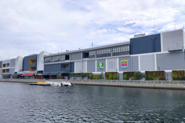 イオンモール西側の運河河畔からは、このツアーの最初に訪れた冷蔵倉庫を別角度から見られます。