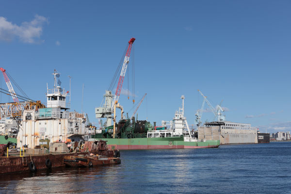 神戸港の造船所と言えば川崎重工と三菱重工が有名ですが、神戸港兵庫突堤の北側には船の修繕や点検を主に請け負う小規模の造船所があります。