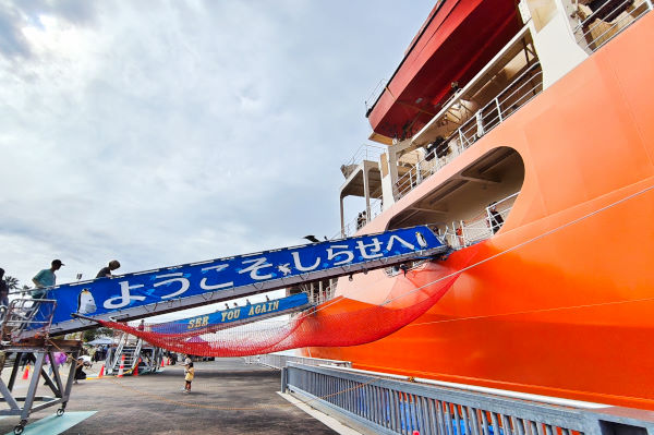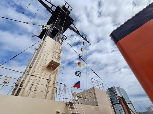 レーダーマストにはWELCOMEを意味する国際信号旗が掲揚されていました。