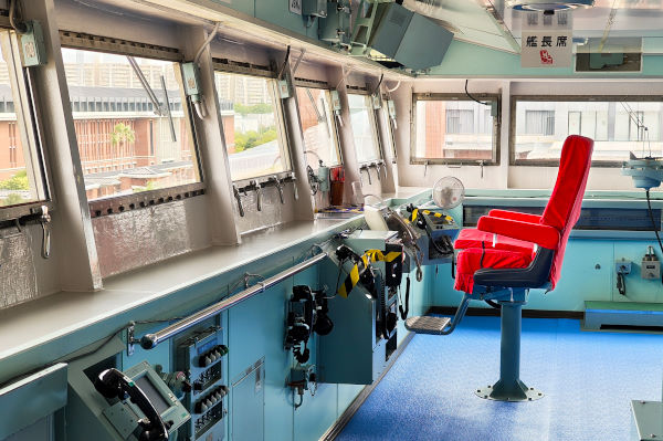 右舷側に艦長が座る赤い椅子がありました。艦長の階級により色が異なるとのこと。赤色は艦長が1等海佐であることを示しています。