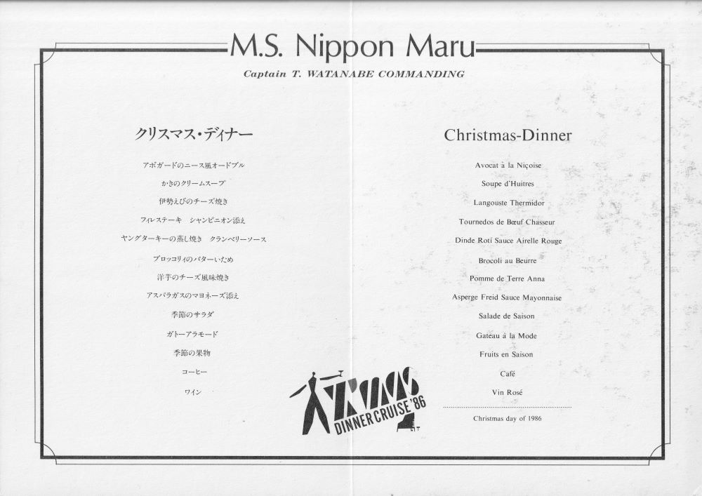 この日に撮影したと思われる写真が一枚みつかりました。にっぽん丸ではなく新さくら丸の写真です。この頃、新さくら丸は横浜発着でMerry Xmas from YUMINGを開催していました。