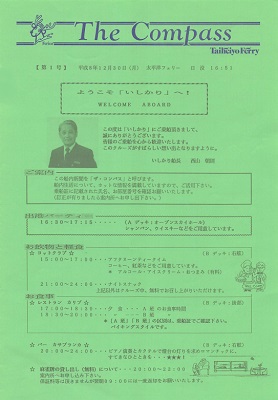 本クルーズには太平洋フェリーの社長さんが乗船し、サロンコンサートでは自ら司会を勤めていました。演奏曲の背景やエピソードを交えた司会振りは本職顔負けでした。コンサートがティータイムに掛かるとお茶の用意をし、船が来島海峡に差し掛かるとコンサートを中断して窓の外に注意を向かせるなど細かい心配りが感じられました。この社長さんは、太平洋フェリーのクルーズ路線の仕掛人ともいえる人で、海外のクルーズ船にも何度も乗船して研究しており、「クラブメッド2」のグアムクルーズで一緒になったことがあります。