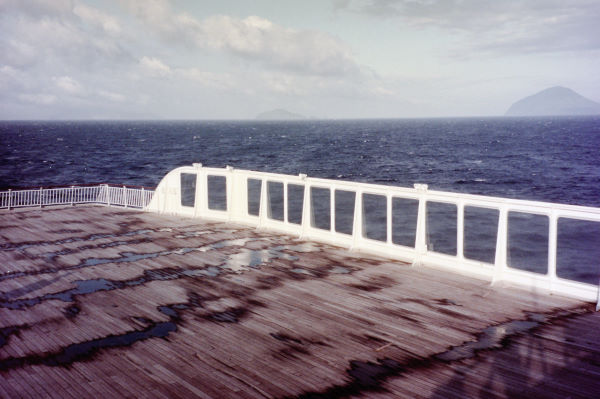 煙突を取り巻くようにあるトップラウンジの見晴らしは良いのですが、思ったより位置が低いため船首前方は見えません。また、トップラウンジへはエレベータが一基あるだけなので、込み合う場合がありました。