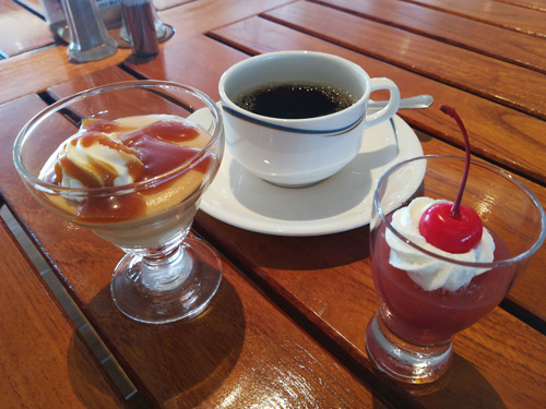 和食の昼食はすき煮でした。ちょっと物足りなかったのリドカフェでデザートを食べました。
