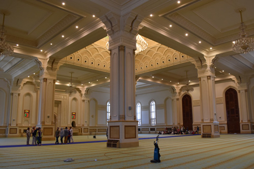スルタン・カブース・モスクはまだ新しいモスクです。モスクの内部に入ると冷房が効いたような涼しさを感じます。