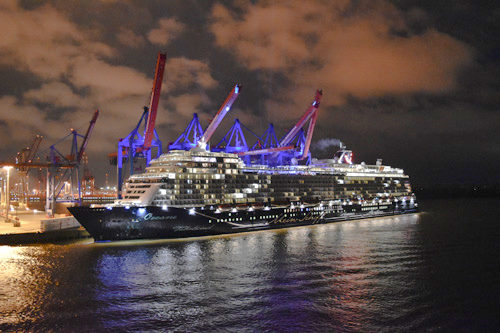 飛鳥Ⅱは22:00出港しました。ザンクトパウリ桟橋からは大音量の音楽が聞こえてきて、まだまだ夜はこれからの感じです。Mein Schiff 1はOver nightで、朝着岸していた岸壁からシフトしたようです。